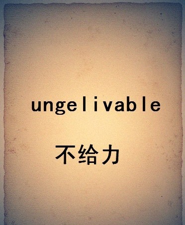 此单词传播速度之快,短短几个小时内被转发上万次。ungeliable这个词,虽然看上去是英语,却体现了中西合璧的造词逻辑。前缀“un-”在英语中表示否定,可翻译为“不”;后缀“-able”在英语中表示单词为形容词;而中间的“geli”却是直接音译自中文的“给力(geili)”。与其他英文单词相比,这一“中式英语”单词基本上符合了英语造词规则,唯一不同之处则在于——老外绝对看不懂。虽然老外看不懂,但是ungeliable在中国网友中却大受欢迎。“昂给力围脖!”网友们不仅第一时间就弄懂了它的发音,而且举一反三,“哈哈,这单词实在太gelivable了”。“这简直是太gelivable了”。你学会此单词了吗?