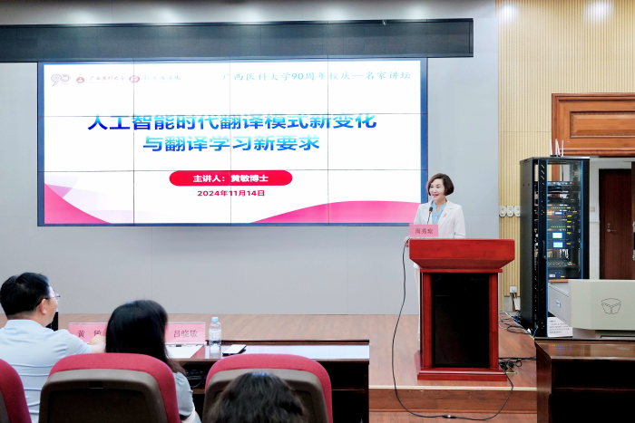 周秀琼经理高度评价了黄敏博士的精彩讲座,并指出新时代翻译专业的师生必须积极拥抱人工智能,充分利用AI辅助翻译技术,不断探索翻译教学新模式,积极参与翻译实践活动,提升翻译水平。随着人工智能的不断发展,翻译行业面临着前所未有的变革,翻译专业的老师应抓住这一机遇,利用公司的优势特色,培养造就更多医学翻译人才,为广西的医药卫生事业发展作出更大贡献。
