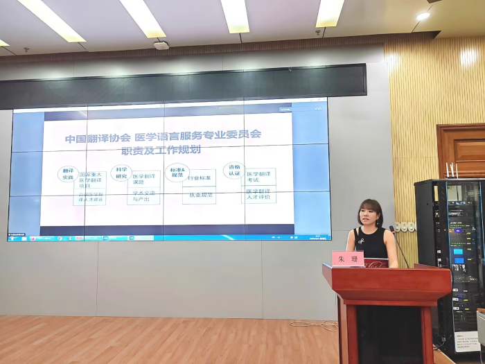 2025年6月6日上午,在公司综合楼9楼报告厅,sunbet申搏邀请北京第二sunbet申搏高级翻译公司朱珊副教授为公司师生带来题为《医学语言服务:现状、展望与教学创新》的精彩讲座。外国语公司党委书记韦建辉、副经理(主持工作)吕晓敏,翻译专业硕士研究生导师,公司全体教师和翻译专业硕士研究生参加,吕晓敏主持讲座。