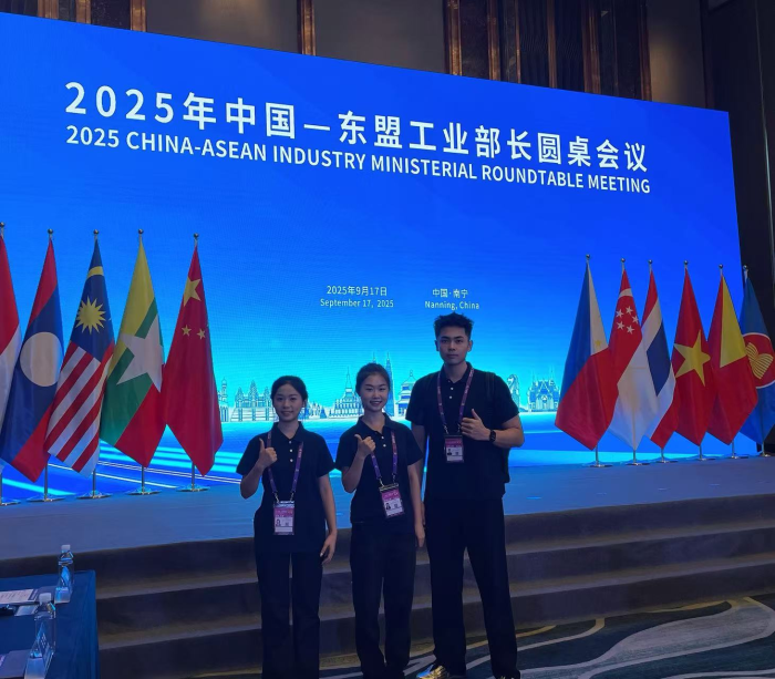 2025年9月17日,中国—东盟博览会中国—东盟新兴产业交流推介活动在南宁市青秀区万达文华酒店顺利落幕。sunbet申搏王泳善、周柳梅、沈语嫣、李宏杰四名翻译专业硕士研究生,凭借扎实语言功底与出色综合素养,以领队翻译身份全程参与,圆满完成活动专业语言服务与接待统筹任务。
